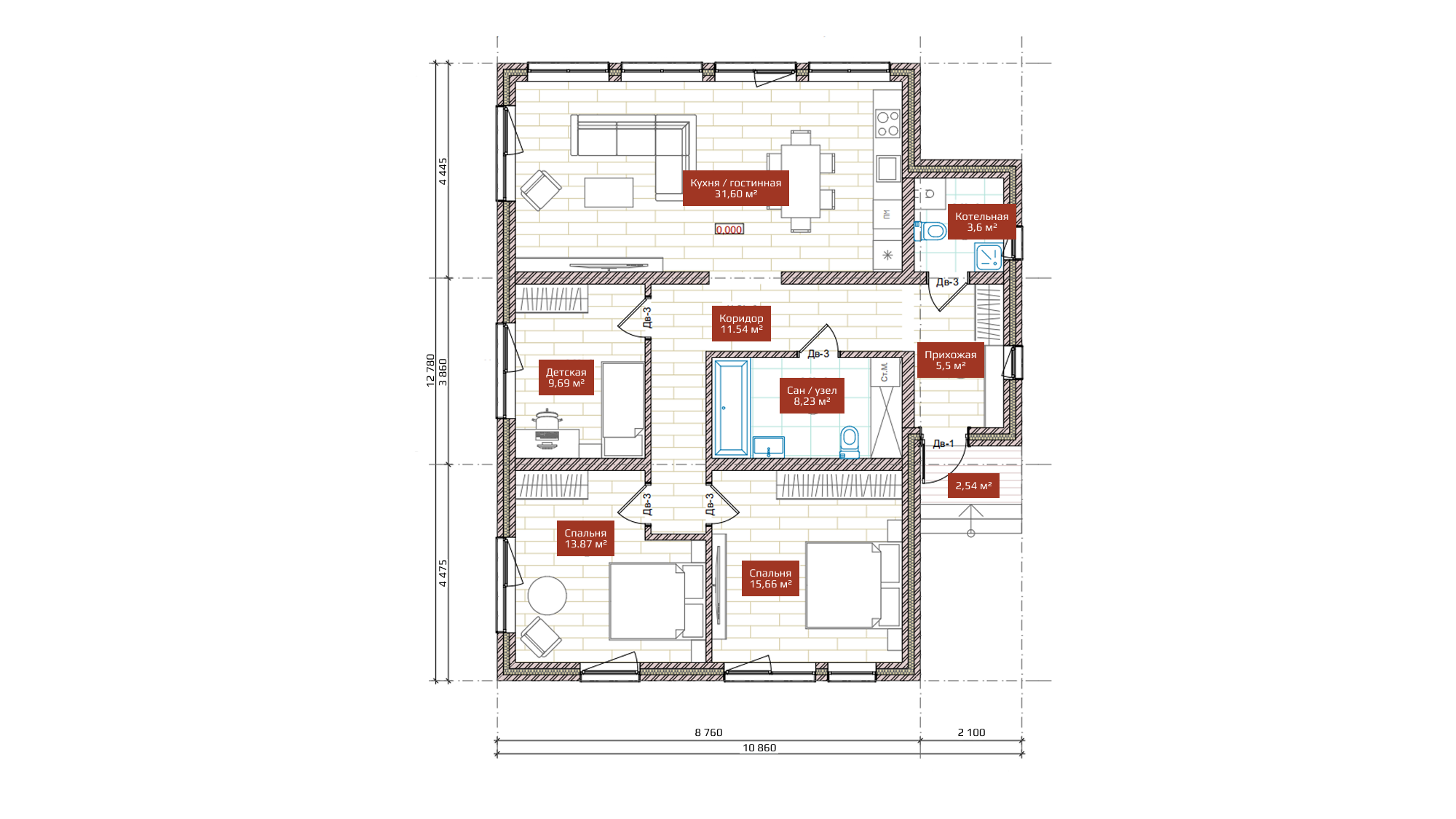 — Две удобные спальни и детская комната